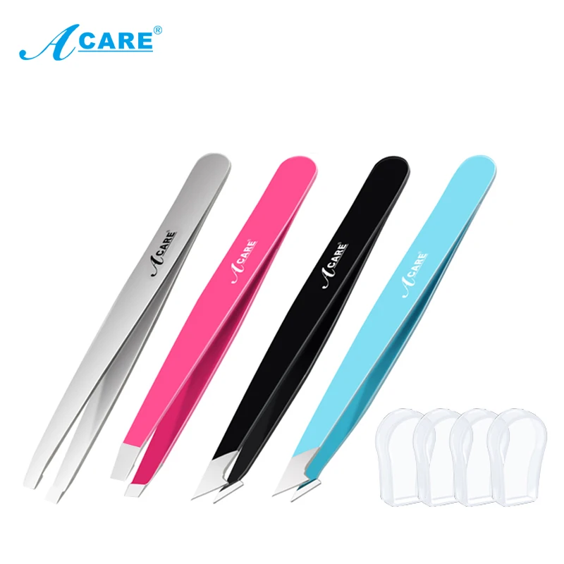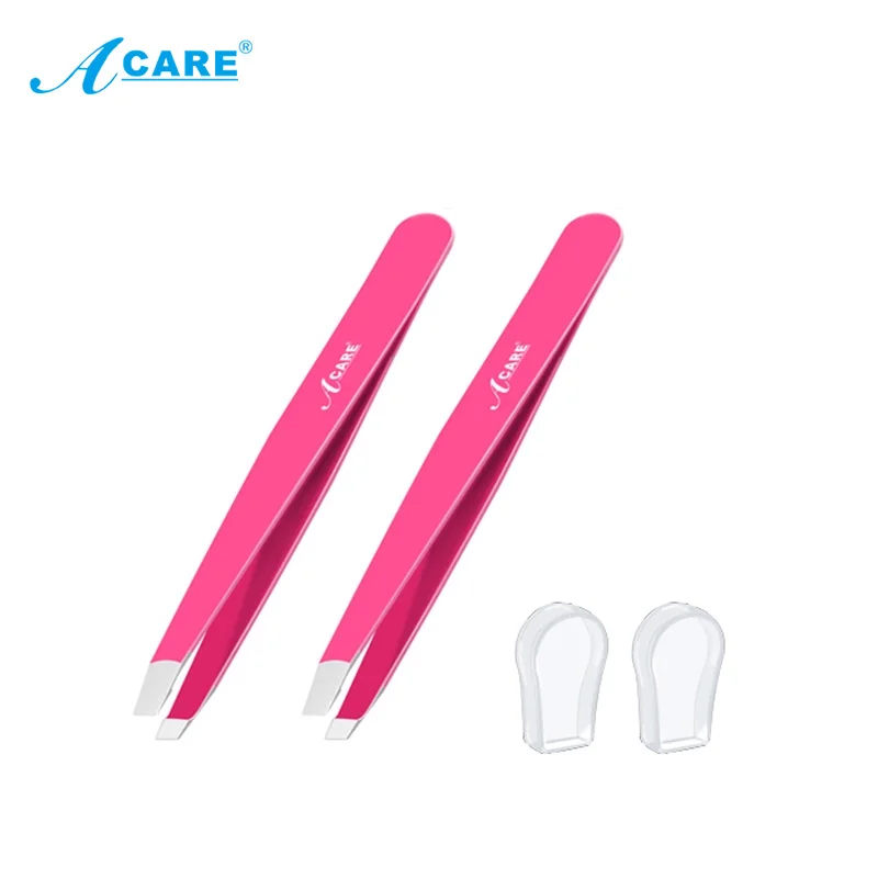 Пинцет для удаления волос, пинцет для бровей из нержавеющей стали, розовый, с наклонным черным кончиком, безвредный инструмент для макияжа, серебристый