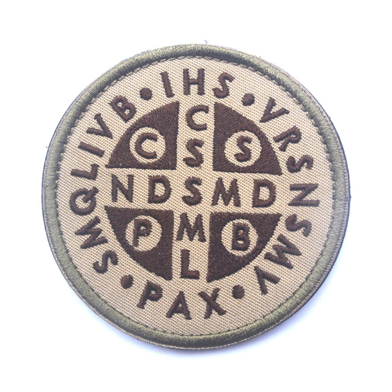 Нашивка в виде креста Святого Бенедикта, жженая бронза, католическая св. 3D армия США, военный тактический значок, вышитые нашивки, наклейки