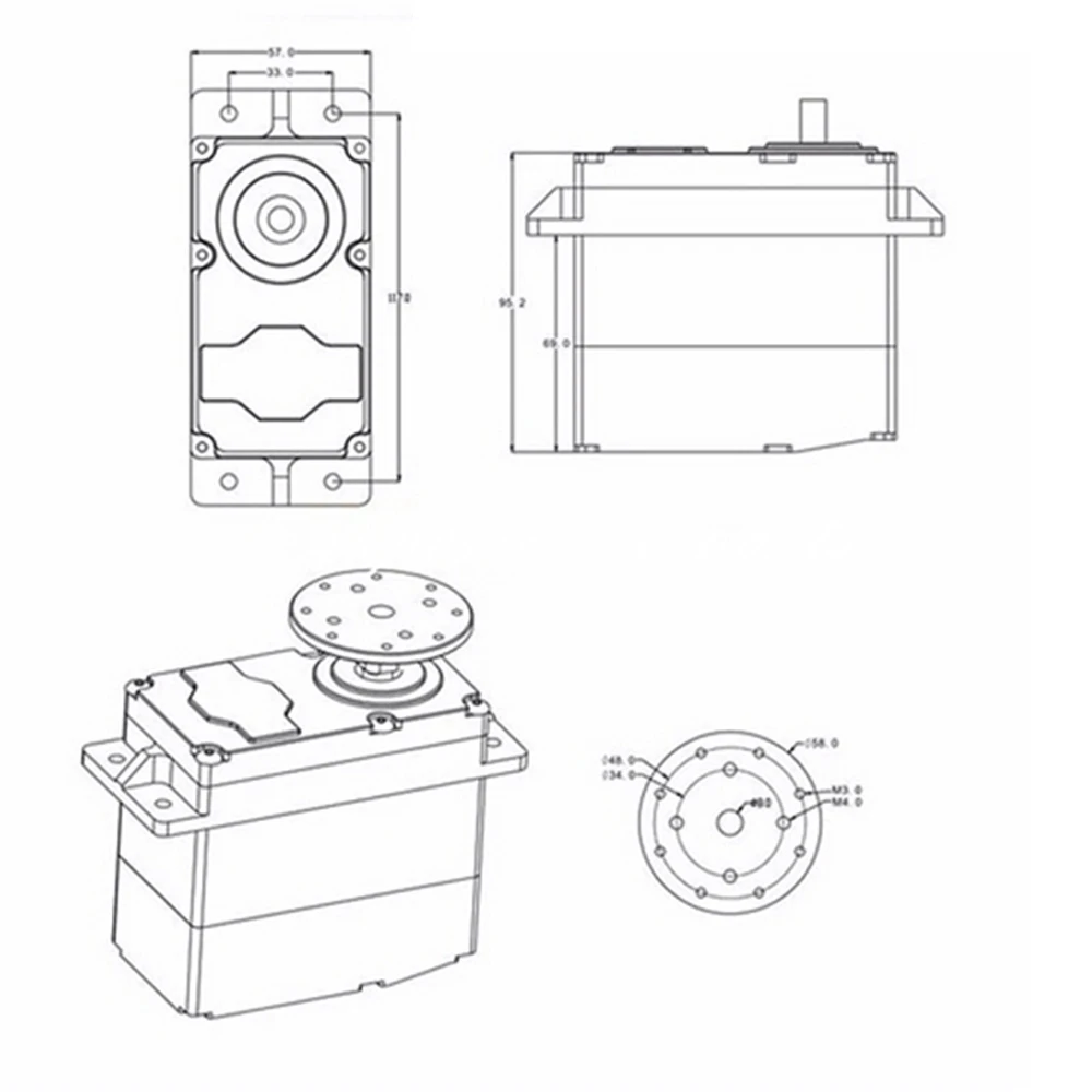 Плата управления Сервоприводом, расширенная возможность настройки, предложенная на основе требований настройки плеера.Каждый сервопривод, когда Фабрика проводит строгие испытания для обеспечения надежного качества, не рекомендуйте пользователям модифицировать, разбирать. Если повреждение в процессе DIY вызвано клиентом, мы можем отремонтировать, но это требует от клиентов платить самостоятельно. SUPER200 300 металлический сервопривод с высоким крутящим моментомА именно 1 см Длинный рычаг может поднять вес 200 кг (300 кг)! Настоящий сервопривод с высоким крутящим моментом!Servos с высоким крутящим моментом на самом деле имеет широкий спектр применений, различные виды манипуляторов, gimbals, дронов, AI оборудования, промышленного контроля и т. Д.Этот сервопривод с высоким крутящим моментом структурно разработан со стальной шестерней, мотором 540, корпусом из алюминиевого сплава с ЧПУ с антипламенной оболочкой из АБС-пластика и водонепроницаемостью в некоторой степени. Сервопривод оснащен сервопластиной.Сервопривод принимает цифровую схему, поэтому он быстро реагирует, ход (путешествия) длинный, и идеально совместим со многими системами дистанционного управления на рынке.Поддержка PWM pulse 1-2MS контроль сигнала, который является стандартным сервоуправляемым сигналом, аналоговым контролем напряжения 0-5 В, с нормальной сервоприводной функцией и с возможностью выбора режимов работы на 360 градусов, вы можете контролировать скорость сервоприводаСервопривод встроен на выходе 5 в BEC, вы можете направить питание на приемник.Параметр:Вход питания: 12 В-24 В постоянного тока (V-соединяется с катодом, V + подключаемый режимы работы, вы можете контролировать скорость сервопривода. s с анодом)Ток без нагрузки: <500 мАМаксимальный крутящий момент: 200 кг. См/300 кг. См (24 В) (фактическое, нетеоретическое значение)Угловая скорость: 0.5S/60 градусов (60 градусов 0.5S), 24 ВУгол поворота: 300 градусов Макс, Максимальный ход 300 градусов (0 до 300 градусов регулируемый электронный предел)Режим ввода: импульсный сигнал (пульт дистанционного управления, многоканальный серводвигатель, MCU) или аналоговый сигнал напряжения (потенциометр)Диапазон входного сигнала импульса: 1,0 ms-2,0 msДиапазон входного сигнала аналогового напряжения: от 0 В до + 5 ВОписание управления и интерфейса:Выход двигателя (M +, M-): M-отрицательный двигатель, M + подключен к положительному электродуВход регулировки скорости двигателя (LD): используется для управления скоростью угла поворота рулевого механизма.Вход регулировки угла (XC): используется для управления диапазоном угла поворота руля.Выбор режима (VR): короткое замыкание для импульсного сигнала ШИМ 1-2 мс вход, короткое замыкание до аналогового напряжения вход сигнала 0-5 в; Вход по умолчанию ШИМРежим рулевого управления (360): не замыкание для нормального рулевого управления, короткое замыкание руль 360 градусов; Стандартный рулевой механизм по умолчаниюРежим аналогового управления (5V-VR-GND): угол входного сигнала является аналоговым, может использовать потенциометр для управления положением выходного вала двигателя.Режим цифрового управления (PW-5V-GND): входной сигнал-это цифровой сигнал Fang Bo, ширина импульса в 1 мс-2 мс.Выбор режима:Короткое замыкание-это аналоговый сигнал напряжения 0-5 в вход, если не короткое замыкание, это импульсный сигнал PWM 1-2ms вход; Вход по умо
