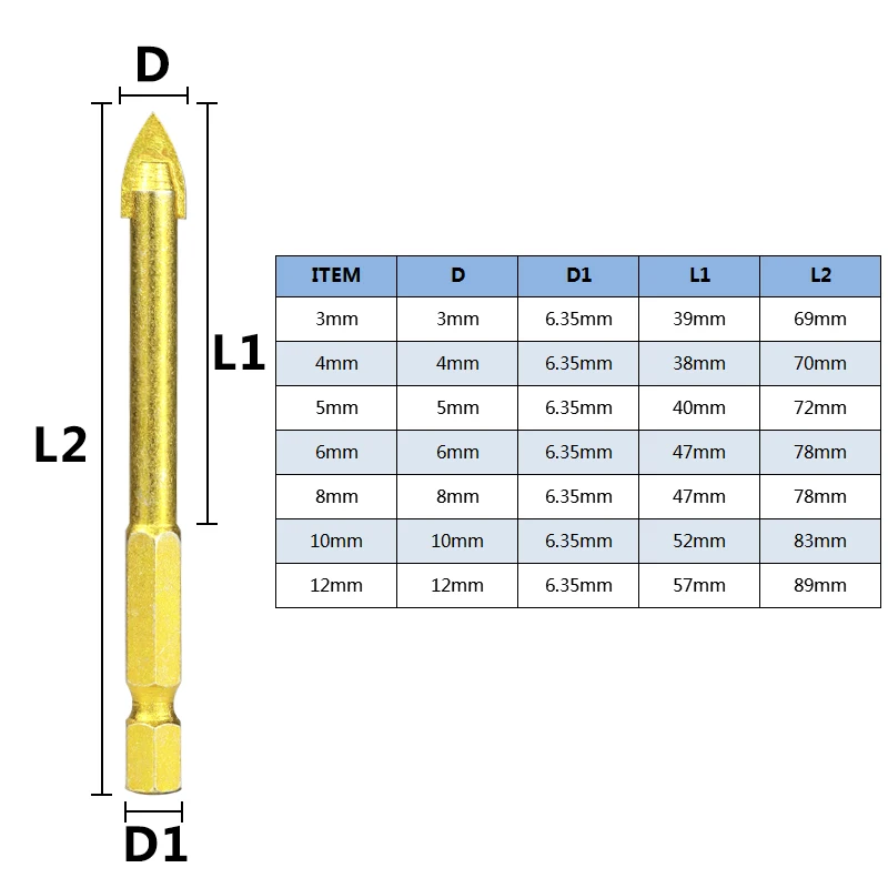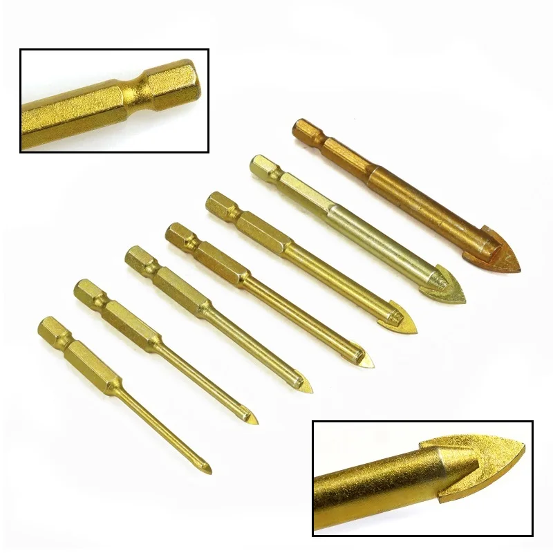 Набор сверл XCAN, 1 набор твердосплавных насадок 14 дюйма с шестигранным хвостовиком и титановым покрытием для электроинструментов, настенное сверло для стекла