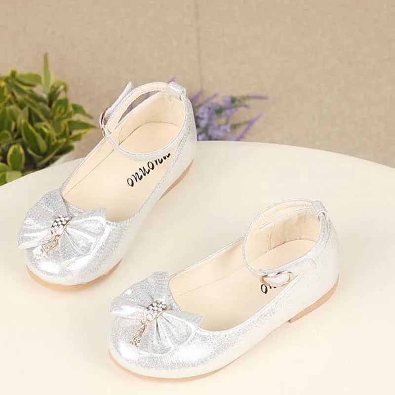 Кроссовки детские кожаные с бантом и жемчугом, на осень