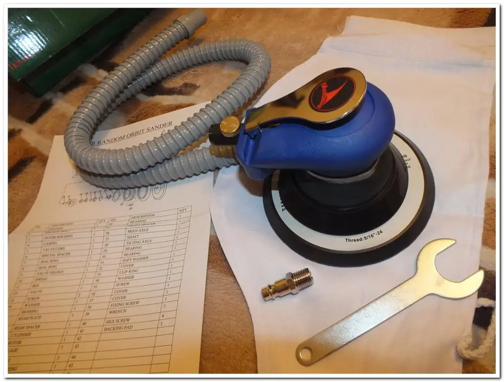 Отличная орбиталка, штуцер, мешок, шланг в комплекте. На вид отличный инструмент. Покрутил на компрессором холостом ходу, все ок. Заказывал из РФ, IML удивили, от момента заказа до момента получения 5 дней.