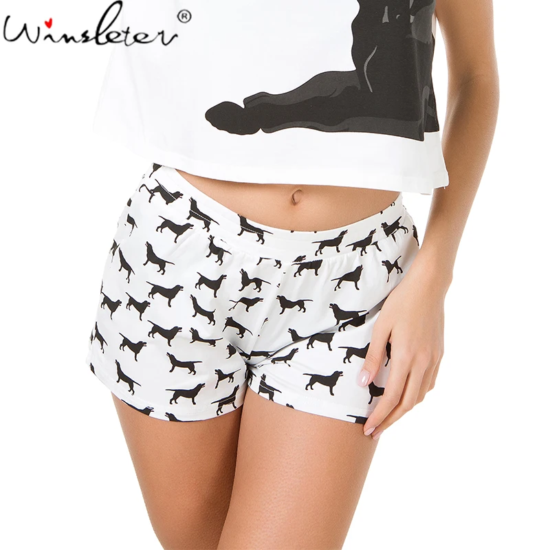 Шорты женские с принтом собаки, из эластичного хлопка, B6701