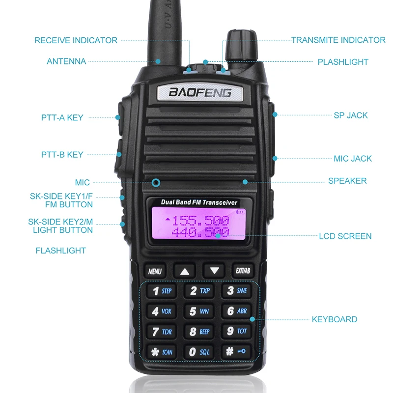 Baofeng UV-82 двухдиапазонный УКВ 136-174 МГцUHF 400-520 МГц Портативный ручной иди и болтай Walkie Talkie с большим радиусом любительский двухполосный Ham радио