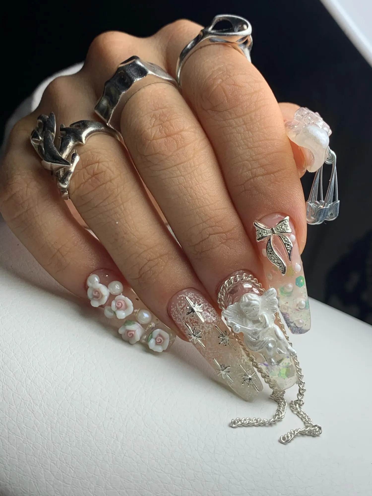 TSZS 3D Золотой Сплав Иисус сердце крест богиня серии ногтей металлические подвески цветок розовые блестки для ногтей украшения