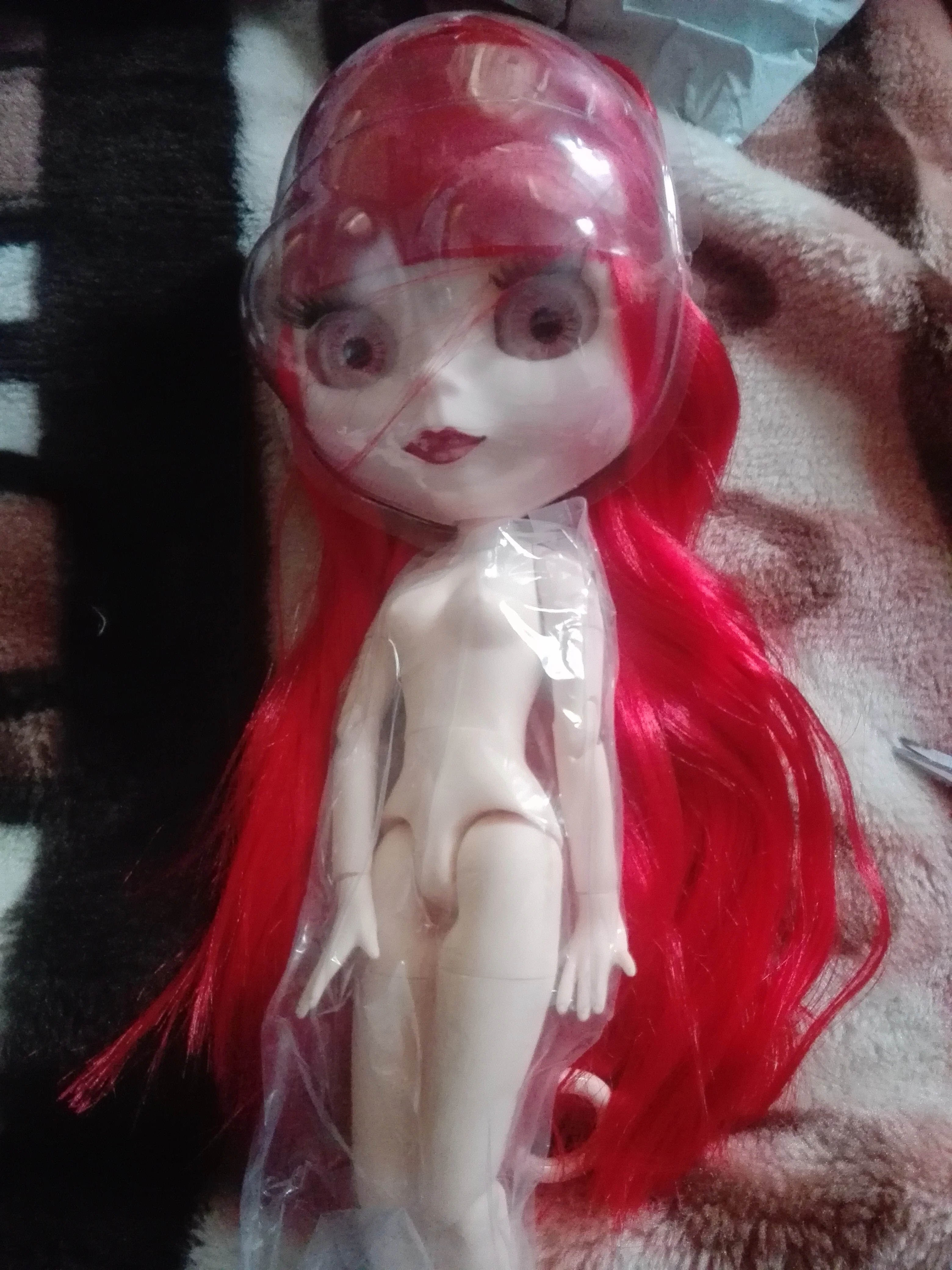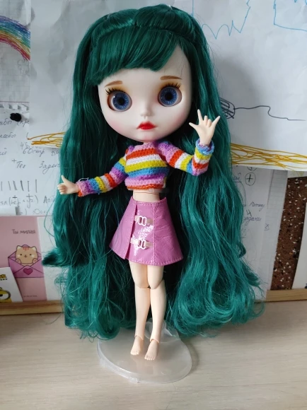 Одна из моих крупных покупок прошла хорошо, всё было качественно упаковано. Куколка пришла в целости и сохранности и дополнительными кистями. Куколка была в пупырчатой плёнке, а на лице пластиковая «маска», которая оберегает лицо куколки. Сразу же ей сменила пластину от другого продавца, а так куколка прелестная, волосы мягкие. Но будьте аккуратнее, они очень путаются и при первом расчесывании выпадают. В дальнейшем только изредка. Скинутое тела отличается от лица, но это не так вырвеглазно с одеждой.