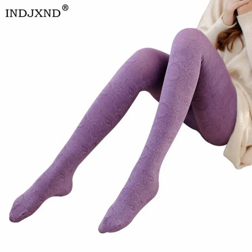 Модные полые зимние Бархатные колготки высокой эластичности колготки ретро колготки тотемные не непрозрачные толстые колготки 6 цветов W012