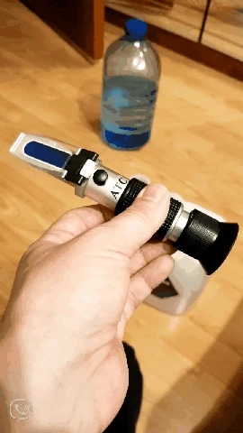 Все как в описании. Откалиброван. Сравнил с ореометром - показания абсолютно идентичны, но с ареометром ошибиться можно, замер более трудоемкий, надо потряхивать, сбивать пузырьки, поплавок с отметками крутится. А рефрактометр просит одну маленькую капельку, замер не гуляет - видно четко. После замера аккуратно в проточную воду слегка теплую помещаем, полотенцем протираем и все!