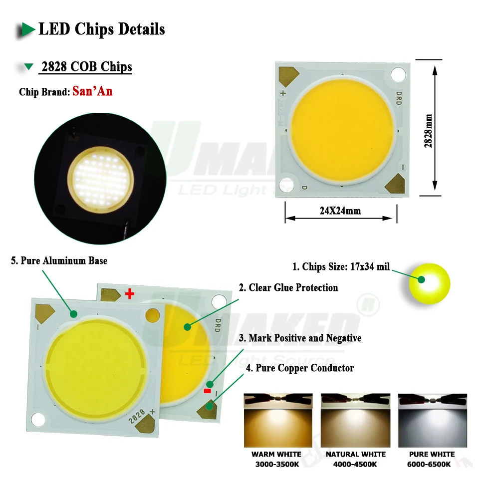 Светодиодный ные чипы COB, встроенные чипы SMD Epistar17x34Mil, 3 Вт, 5 Вт, 7 Вт, 10 Вт, 12 Вт, 15 Вт, 20 Вт, 30 Вт, 40 Вт, 50 Вт