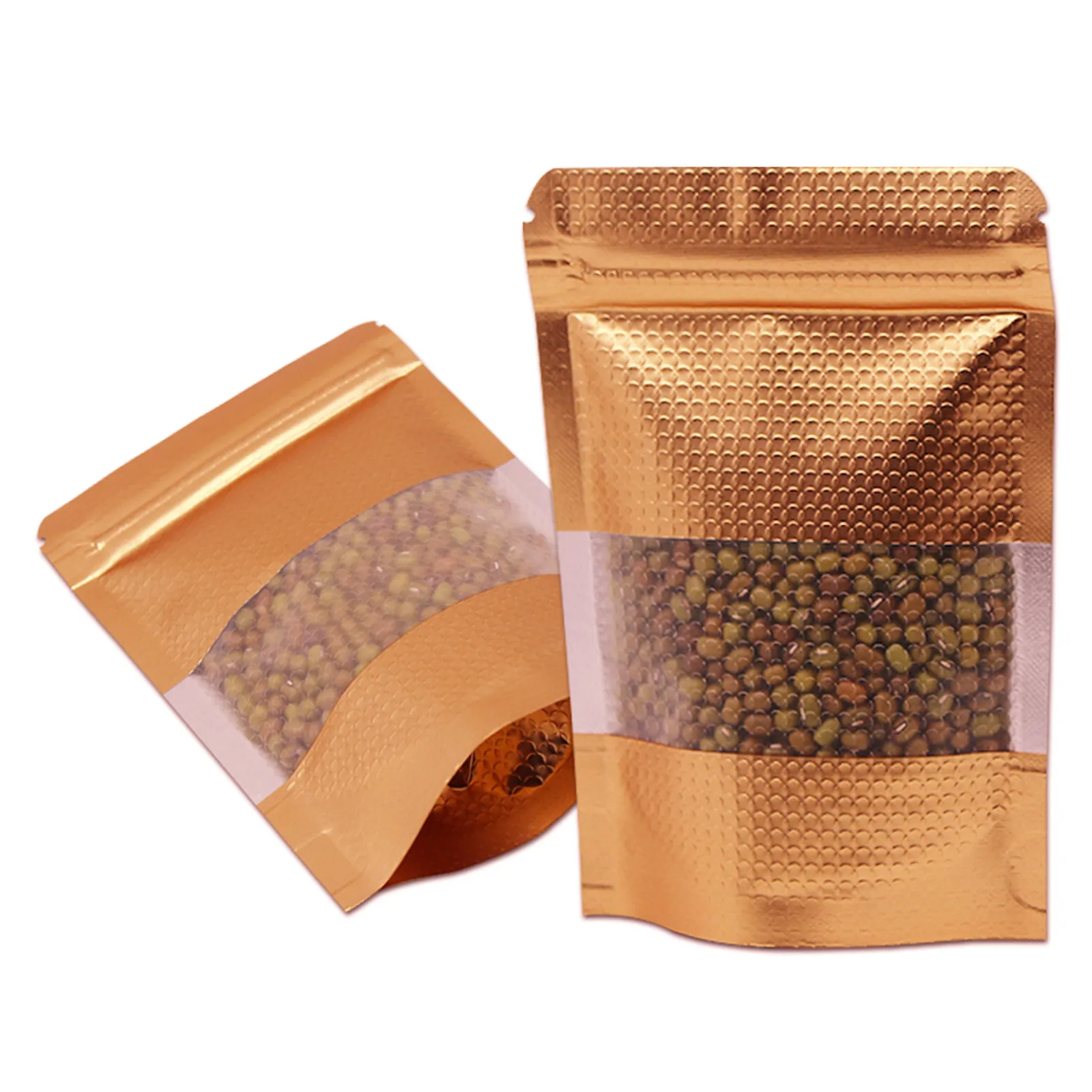 100 шт.лот золотой с окошком стоячие линии из алюминиевой фольги с застежкой-молнией самозапечатывающийся пакет для хранения еды Дой пак для кофе чая закусок праздничный пакет