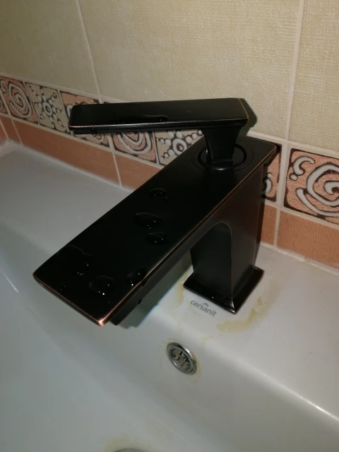 Крепкий, тяжелый кран! Но нужно угадать раковину, так как при максимальном напоре у меня вылетает вода в стороны ;)