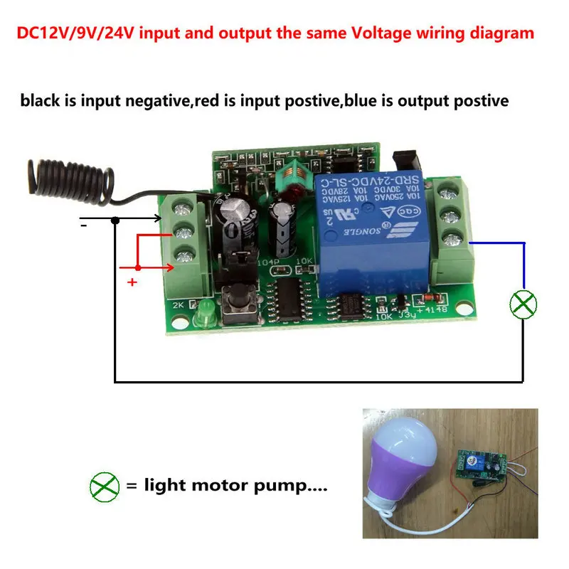 Беспроводной релейный выходной радиоприемник, 10 А, 9 В, 12 В, 24 В...