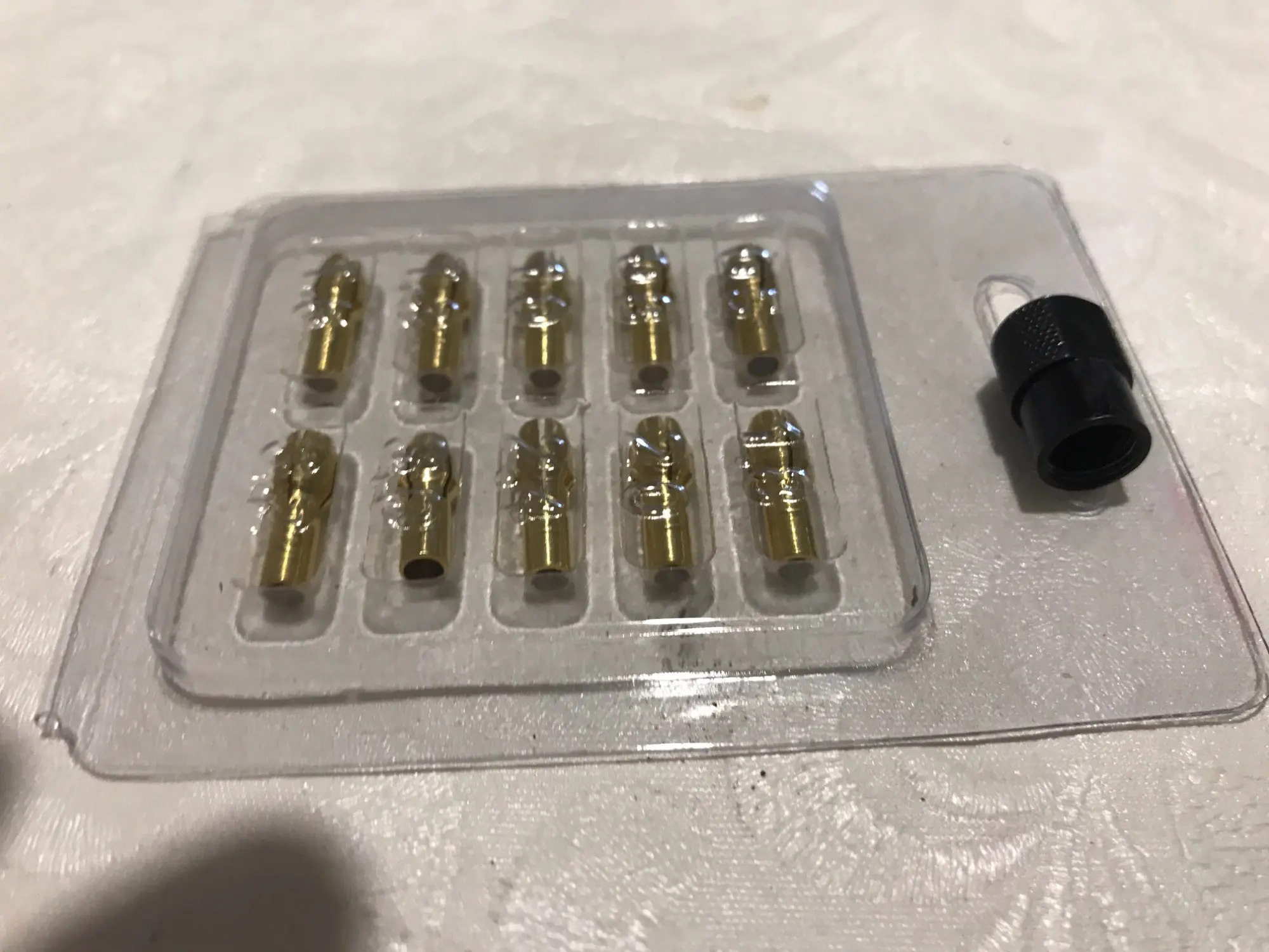 Los portabrocas están bien, encajan perfectamente y parecen correctos. Pero la tuerca tiene la rosca demasiado grande, desliza sobre la rosca macho de mi Dremel así que no me vale.