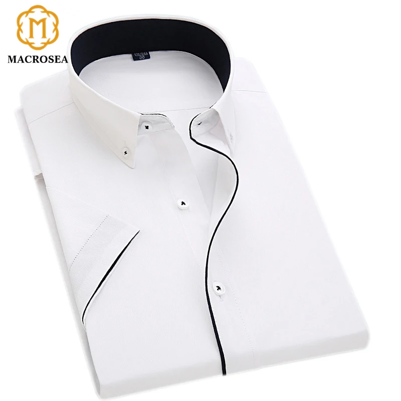 MACROSEA мужская деловая рубашка с коротким рукавом, Мужская черная Строгая рубашка с воротником на пуговицах, Строгая рубашка для работыофиса, Летний стиль