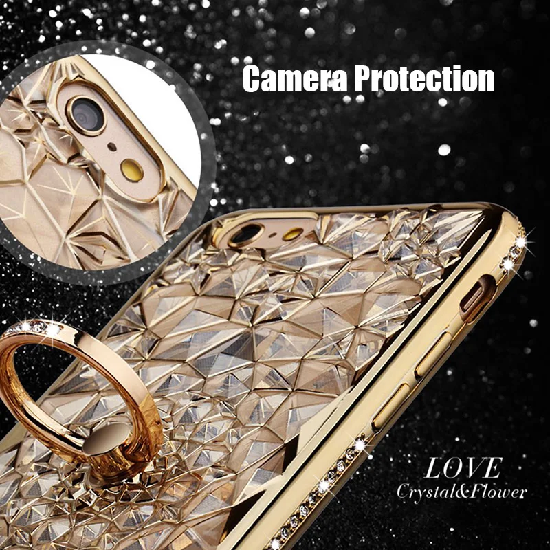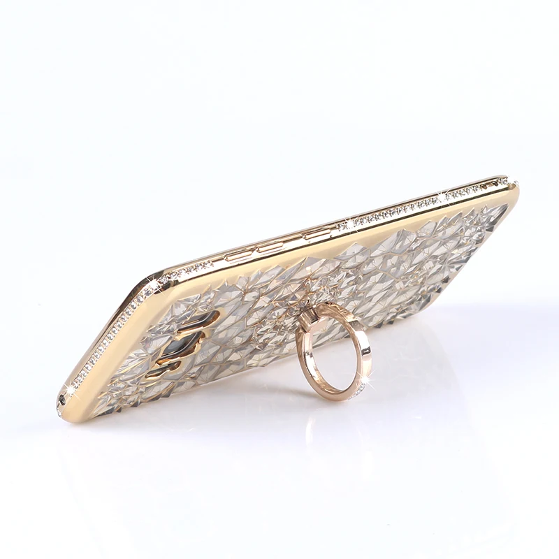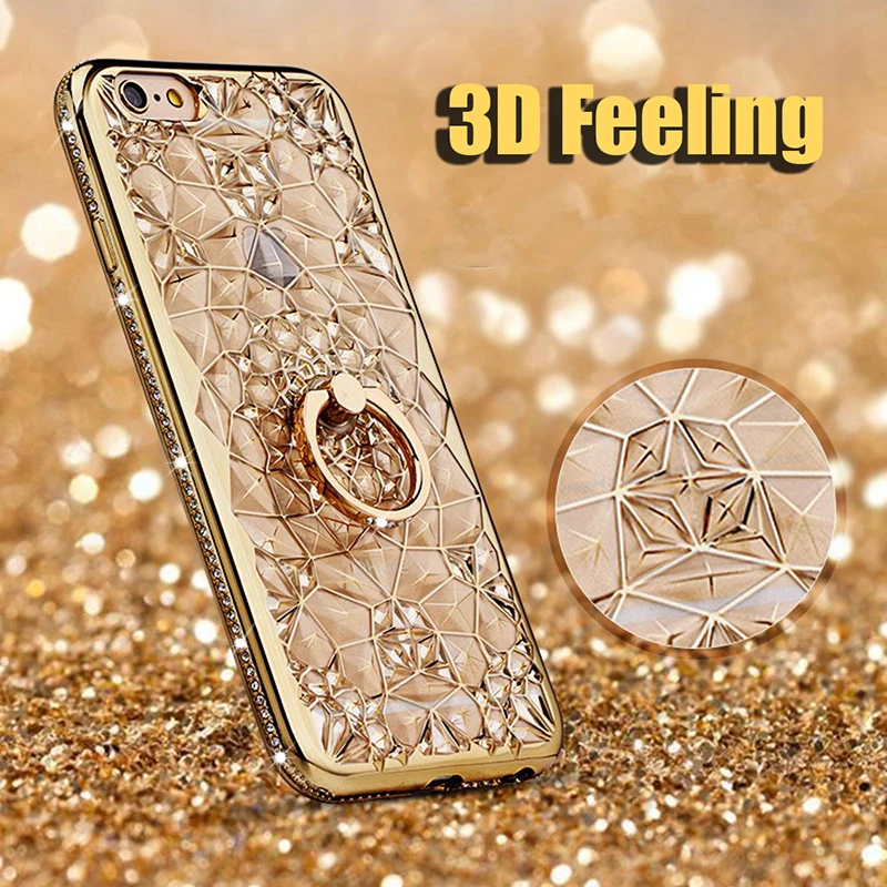 Роскошный чехол для iPhone 7, 7Plus, 6, 6s Plus, Samsung Galaxy S8, S8 Plus, S7 Edge, 3D чехол-подставка с кольцом-держателем для телефона с бриллиантами и цветами