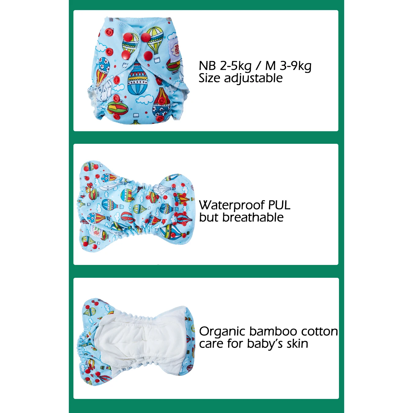 Хорошие размеры, маленькие, подходят маленьким новорожденным. Они не прослужат всю ночь, но и бумажные подгузники тоже. Я думаю, что это так с новорожденными. Красивые цвета, спасибо!