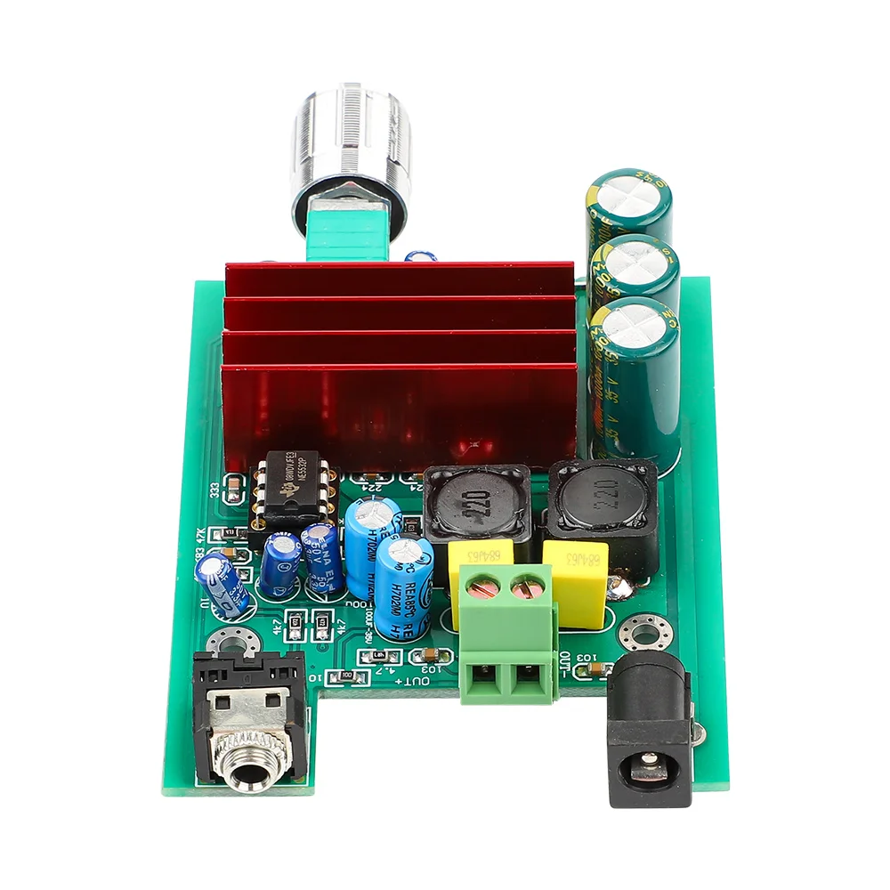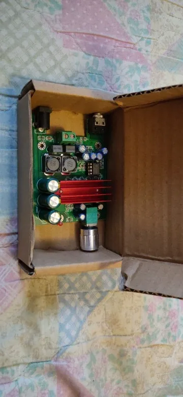 Хорошая упаковка, быстрая отправка. Неплохое качество платы.Заявленная мощность завышена примерно в два раза (не замеры, по ощущениям). Подключал к блоку питания на 24 вольта, акустика 4 Ом. На полной мощности, после часа эксплуатации радиатор слегка теплый. Под радиатором даже термопаста была!:)
