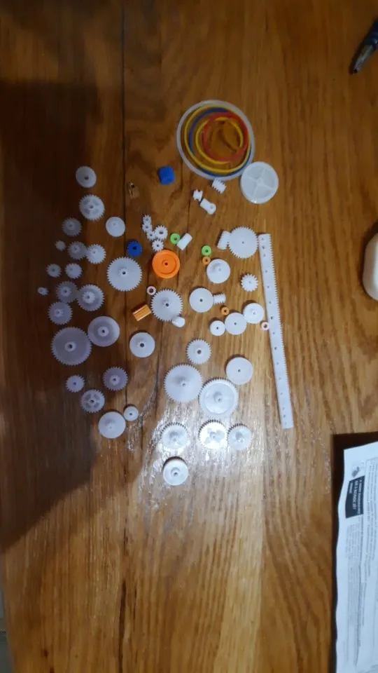 Получить получил, но разочарован. Того что мне нужно в наборе нет :0( а те шестерни что там есть не подходят. Дам 5 звезд задоволно таки оперативную доставку