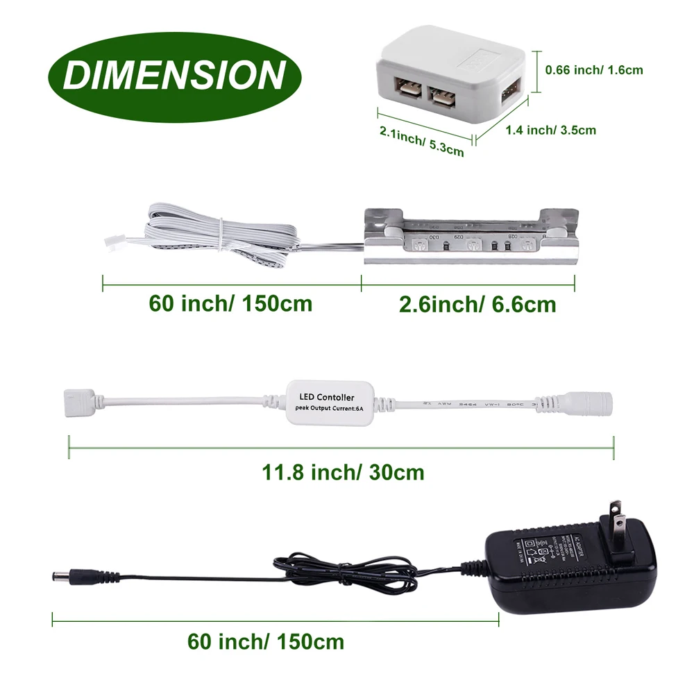 Светодиодные светильники AIBOO для шкафа, со стеклянной кромкой, с зажимом, 4 лампы, с радиочастотным пультом дистанционного управления и адаптером