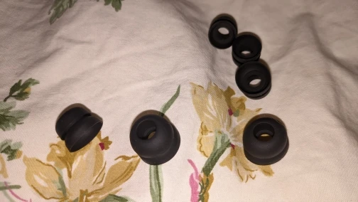 Брал для Ugreen Hitune T1. С большим размером в кейс помещается. Посадка в ушах немного улучшилась, за чем и покупались, собственно. Доставка долгая и не отслеживается