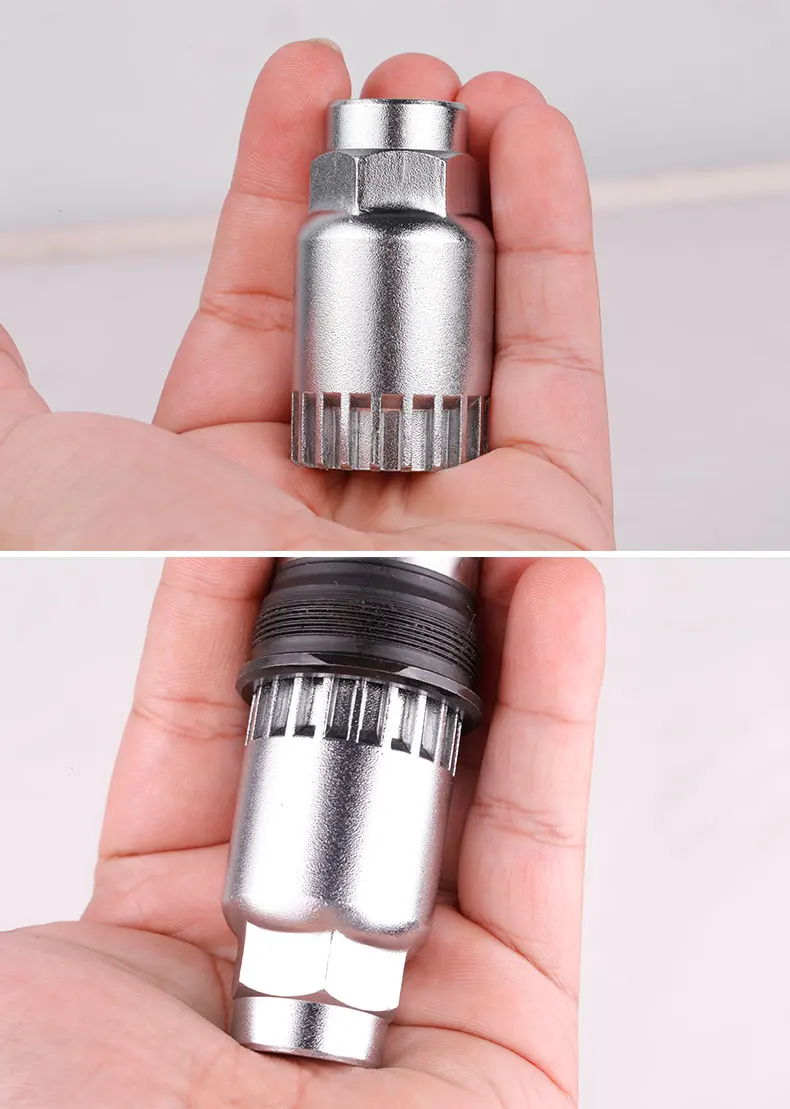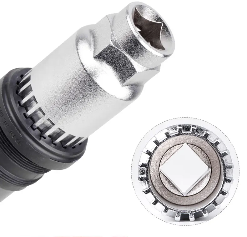 Дополнительная высота до 57 мм и вес 140 граммов, действительно надежная и прочная;-Изготовлен из углеродистой стали № 45, аккуратная цельная формовка, гладкие края, без пятен;-Особенно усиленная головка с увеличенной толщиной для силового использования;-Улучшенная форма зубцов и паза, легче использовать и захватывать, минимизируя повреждения B.B.;-С должной термообработкой в производстве, закаленное, твердое;-Никелированное покрытие как на внутренней, так и на внешней поверхности, более удобное и простое;-Применимо как к нижнему кронштейну ISIS, так и к квадратному кронштейну;-Подходит как для плоских, так и для квадратных ключей широкого диапазона использования;