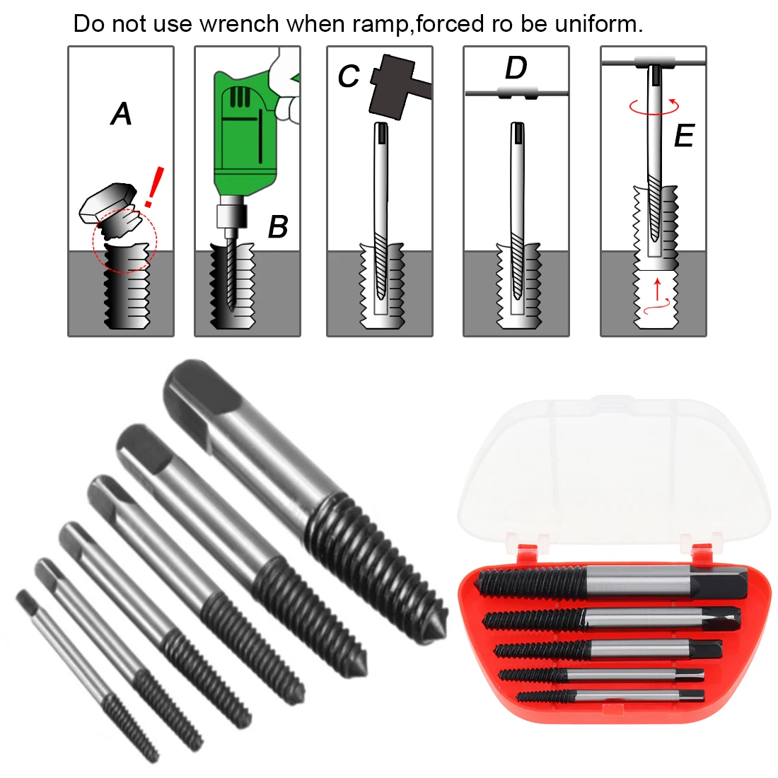 5pcs Screw Extractors Center Drill Bits Guide Set Broken Damaged Bolt Remover Hex Shank And Spanner Removal Speed Easy Set
