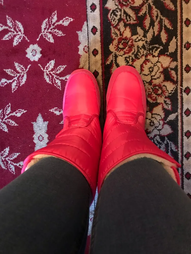 Заказала трое сапог, бежевые, бирюза,(мех внутри под овечий, тёплый), только в жёлтых мех тонкий, жиденький.. С доставкой пара вышла 1630тр
