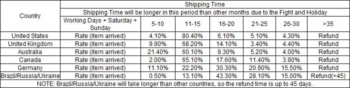Все товары будут отправлены в течении2 рабочих дняПосле подтверждения оплаты.• Примечание: авиа-отправление Почты Китая/посылка только что принадлежит Всемирной почтовой системе, которая гораздо медленнее