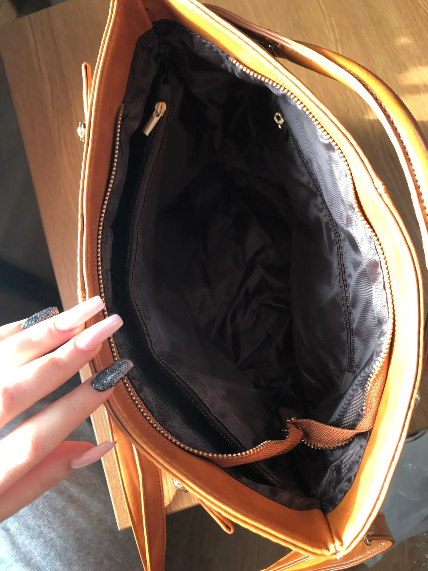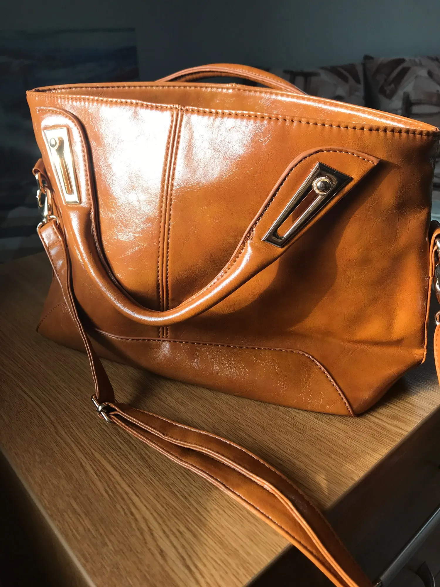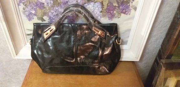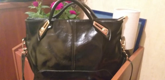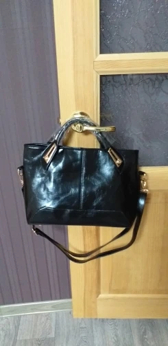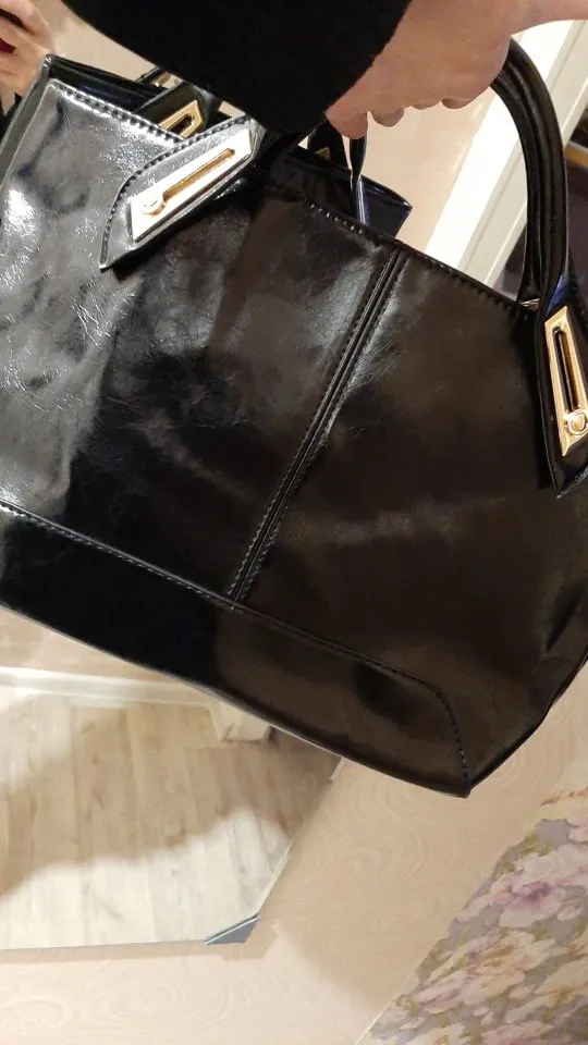 Отличная сумка! Все, как на картинке. Эко кожа, но не смотрится дешево. блестит. Мне понравились ручки, они короче, обычных. Металл на сумке под золото - блестит, не поцарапан. Понравился подклад, он не шелковый, а плотный. Внутри 2 отеления , между ними еще одно на замке. Стильно! спасибо!