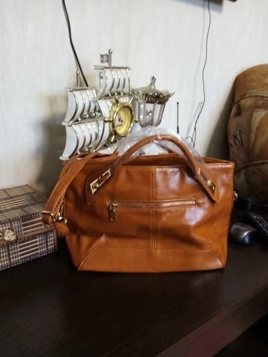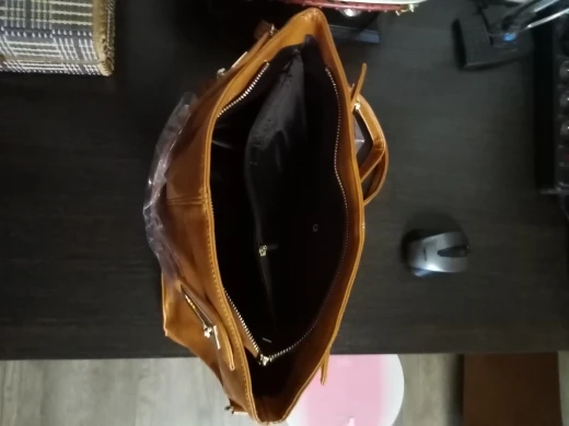 Качество отличное (для PU), швы ровные, хорошие, заломов нет. Но заклепки на ручках не внушают доверия (тяжелое в сумке носить не стоит - оторвутся). Замки работают, прошиты хорошо. Подклад синтетика (шуршит), запаха нет. Цвет желто-оранжевый. Владелица довольна. Подарков не было.