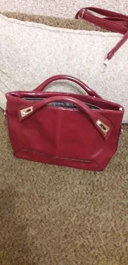 Цвет сумки не красный, как на фото, а вишневый. И форма не квадратная, а вытянутая, длинная - немного меньше в высоту и чуть больше в длину указанных размеров. Покупала сумку как красную и больше квадратной формы, по факту оказалась вишневой. для меня это минус, поскольку вишневый совсем не мой цвет. В остальном сумка сделана хорошо. Это не кожа, полиуретан. в морозы ок. Ручки нормальные, не хлипкие, хорошая подкладка, отделения, вместительная. Вот с приданием формы сумке приходится бороться), но пока носится. все хорошо.