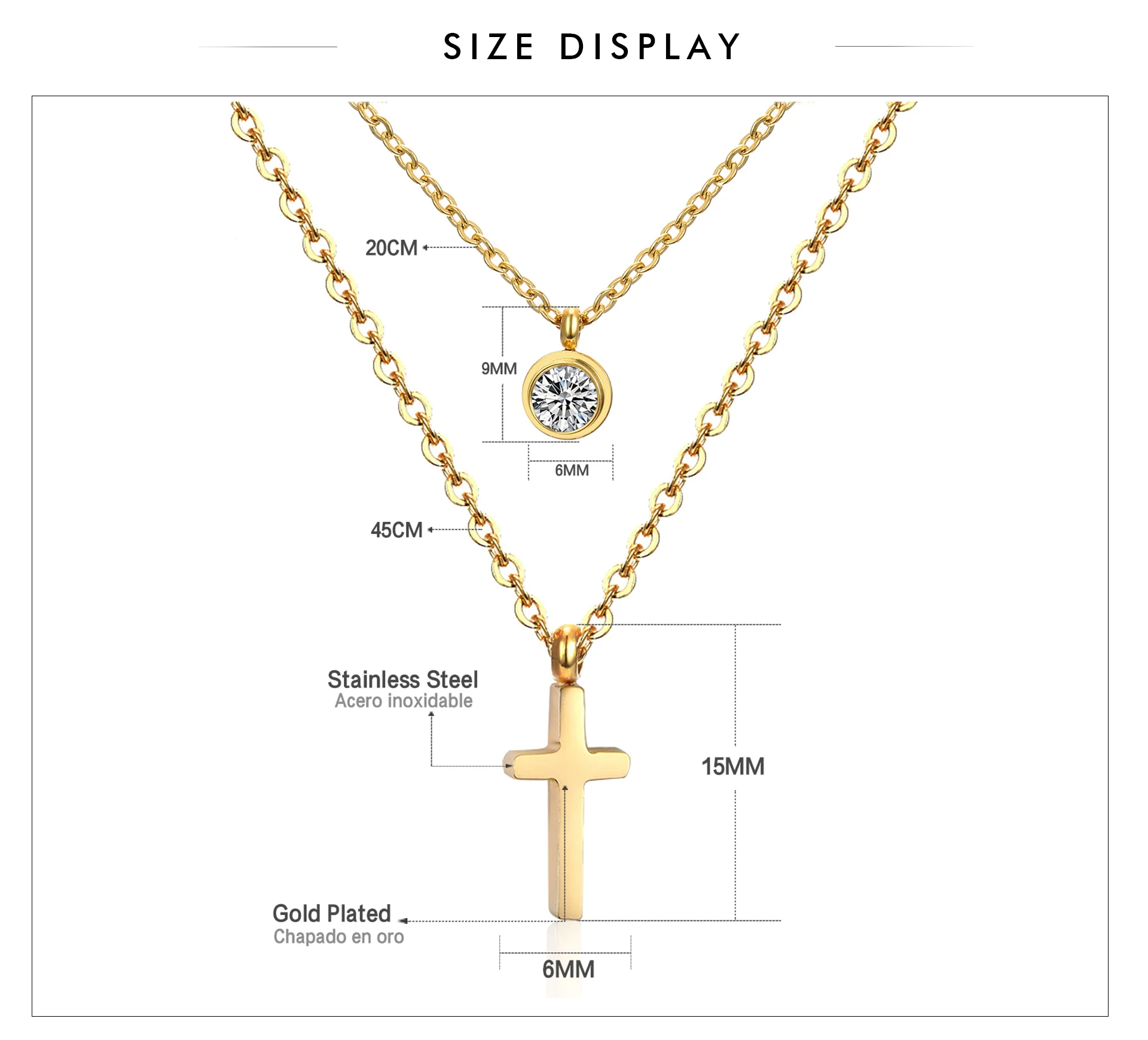 Женское Двухслойное ожерелье LUXUSTEEL с подвеской золотого Креста и круглыми кулонами из кубического циркония, модные аксессуары, 2019
