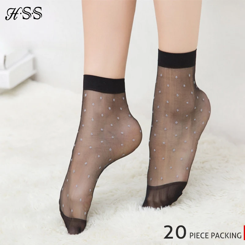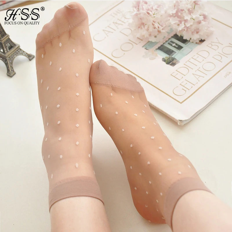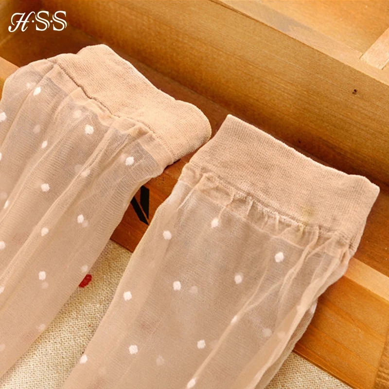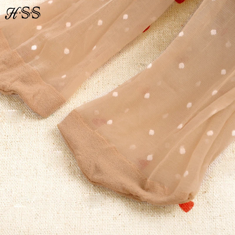 HSS бренд 10 парлот кристалл Шелковый носок летние женские пикантные носки в белый горошек прозрачные эластичные носки для девочек Черная кожа кофе
