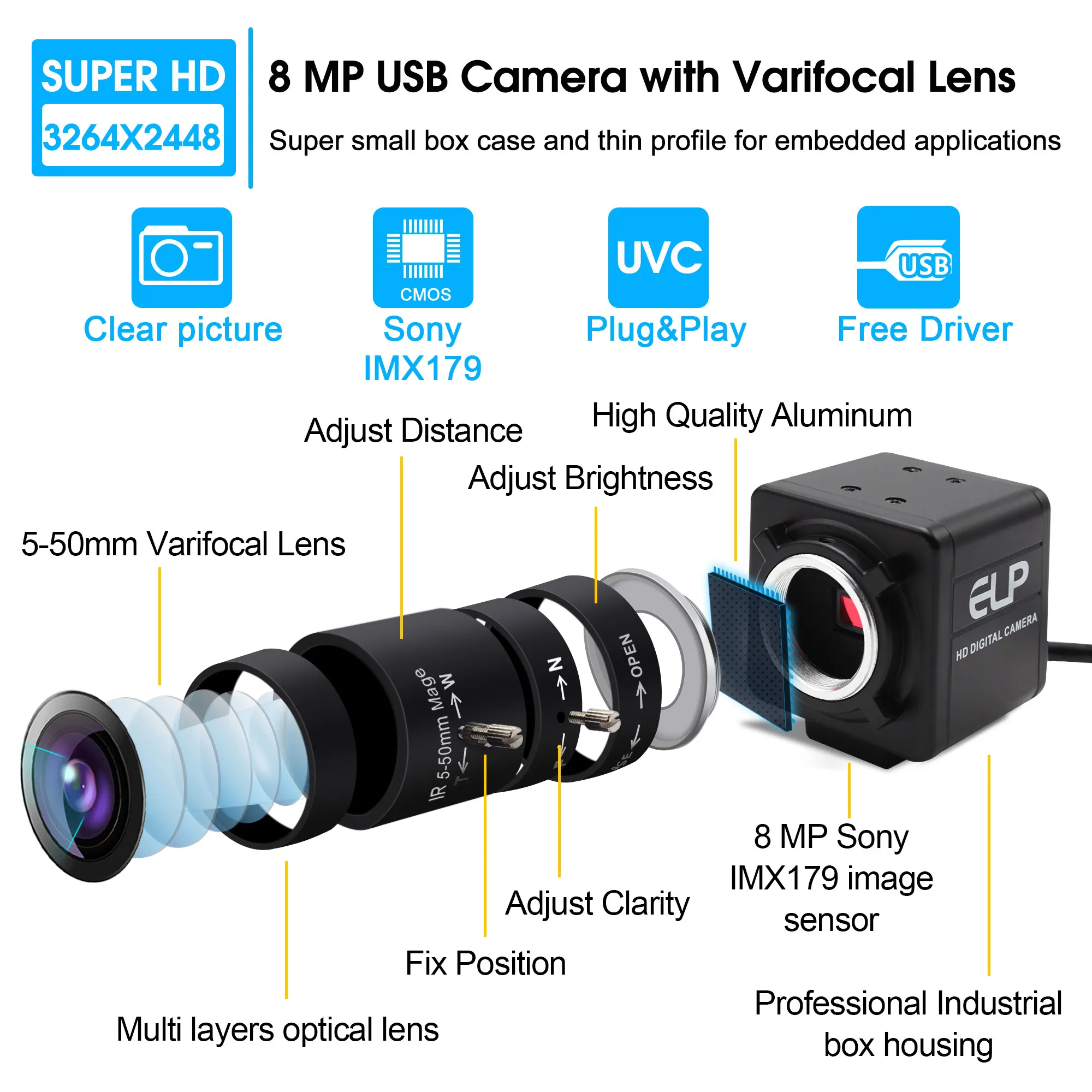 Особые характеристики8mp high resolution with manual focus lens