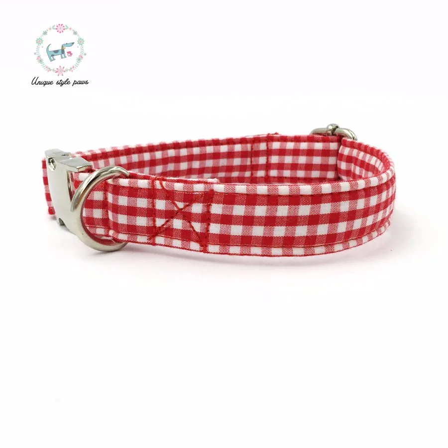 Ошейник и поводок для собак в красную клетку с галстуком-бабочкой