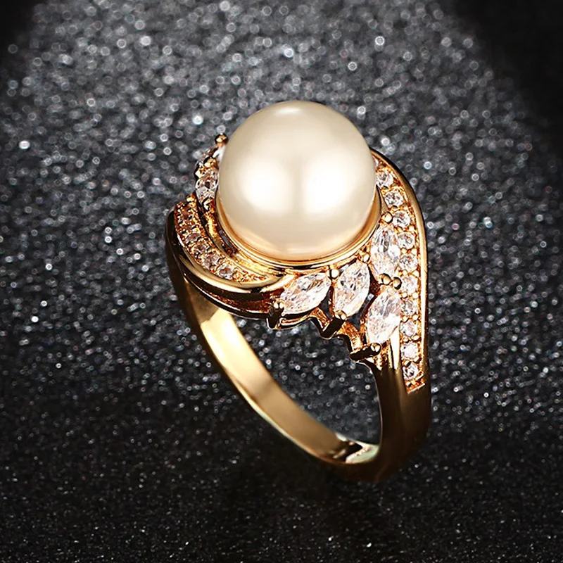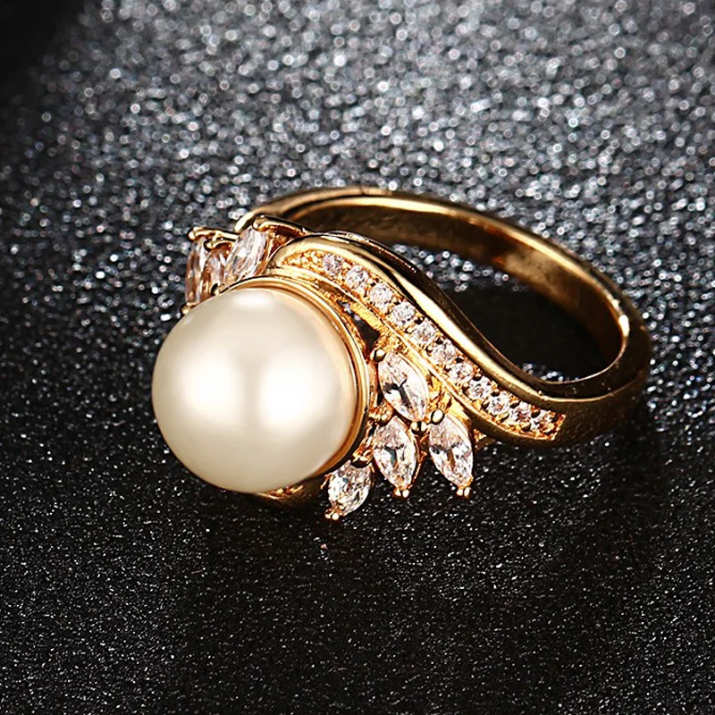 Женское кольцо с искусственным жемчугом, золотистое обручальное кольцо с фианитами класса ААА и кубическим цирконием, размеры США, Прямая поставка