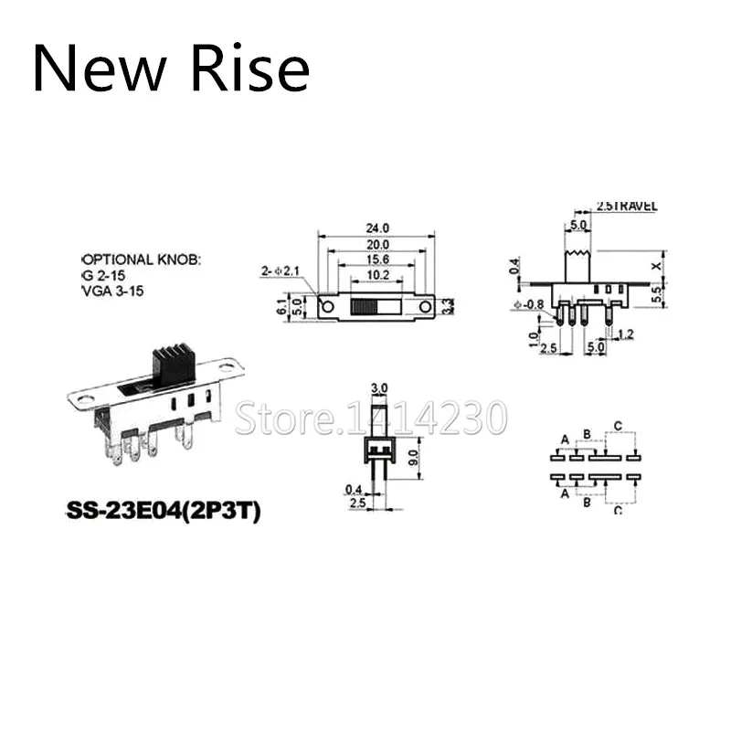 Двойной переключатель SS23E04, 10 шт., 8 контактов, 3 файла, ручка 2P3T DP3T, высота 5 мм, маленький переключатель слайдов