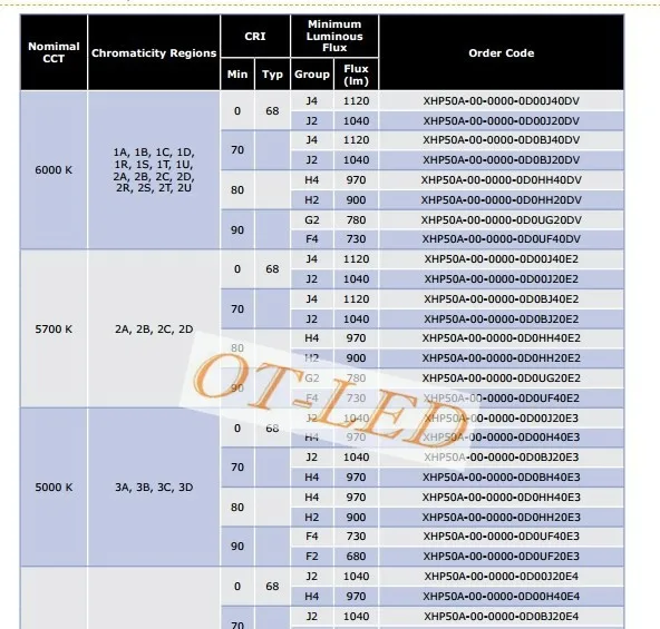 Я заказывал xhp50 5000K 12в 20мм, проверил током 1,8А, все светятся одинаково ярко. световоя температура чуть теплее. Я срвнил с xhp50 4500K 6в 20мм, купленными ранее у этого же продавца, результат одинаковый.