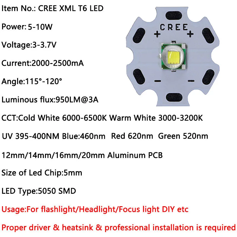 Страна: BY Emitting Color: CREE XML T6 Color: Warm White 3000K Wattage: 20mm White PCB Доставка: Saver Shipping 14.12.2020