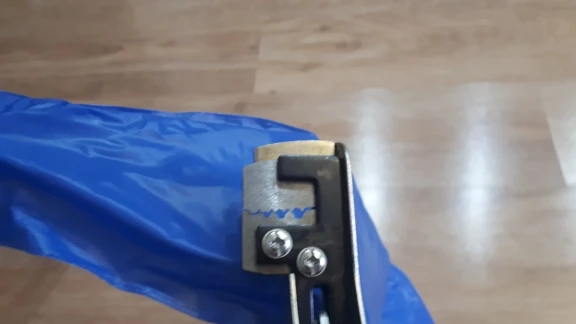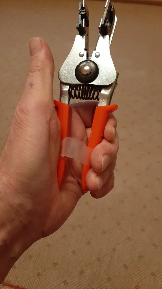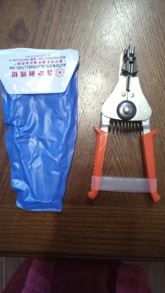 Материал, похоже, хорошо соответствует объявлению. Зажим поставляется в прозрачном пластиковом чехле для верхней части (виден на столе) и непрозрачном синем внизу. Ручки зажима затягиваются прозрачной пластиковой лентой. Если вы удалите ленту, которая плотно удерживает манжеты, вы не можете хранить плоскогубцы в исходном чехле. Слишком плохо.