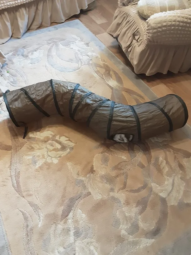 Пришло за 8 дней, очень здорово. Тоннель качественный, в сумочке. Беру уже третий такой. Теперь связал два вместе, кошка довольна.
