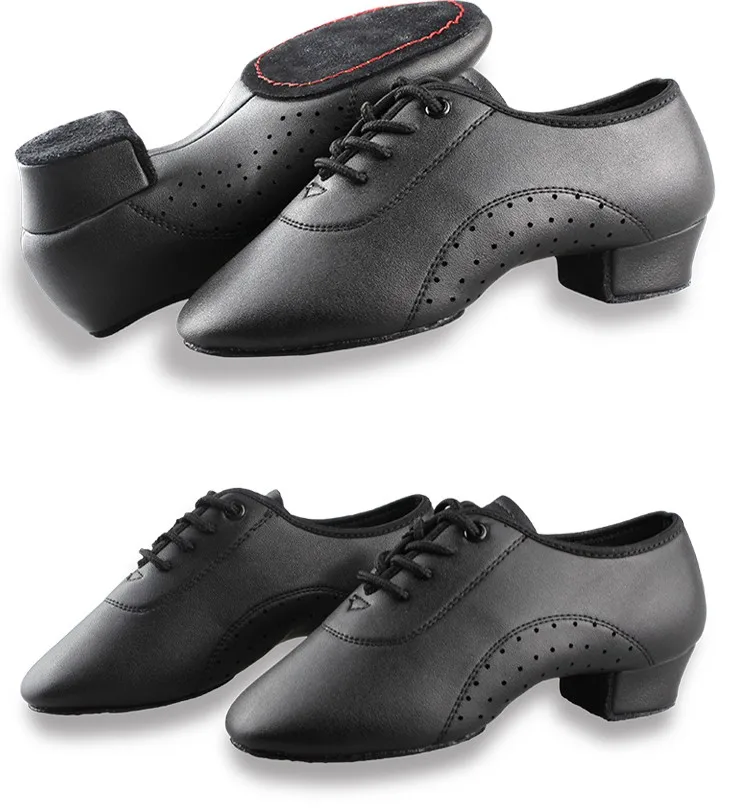 Туфли для латинских танцев для мальчиков, профессиональная кожаная обувь для латинских танцев, черные, для детей, на низком каблуке