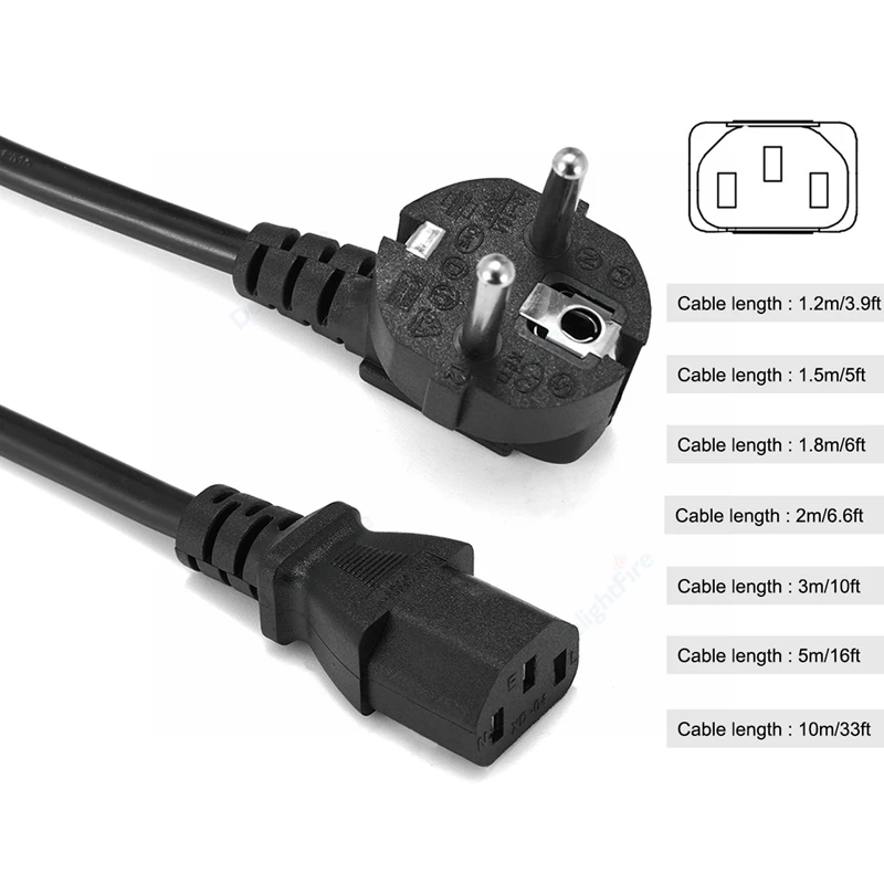 100% абсолютно новый ЕС вилка IEC C13 кабель питания Проволочный Калибр: 0,75 mm2 x 3 Скорость напряжение/ток: 250V 10A Материал проводника: медь Изоляционный материал: ПВХ Тип наконечника: штепсельная вилка Schuko CEE 7/7 Тип торца: IEC-320-C13 Длина кабеля (приблизительно): 1,2 м/1,5 м/1,8 м/2 м/3 м/5 м/10 м опциональноПосылка включает в себя: