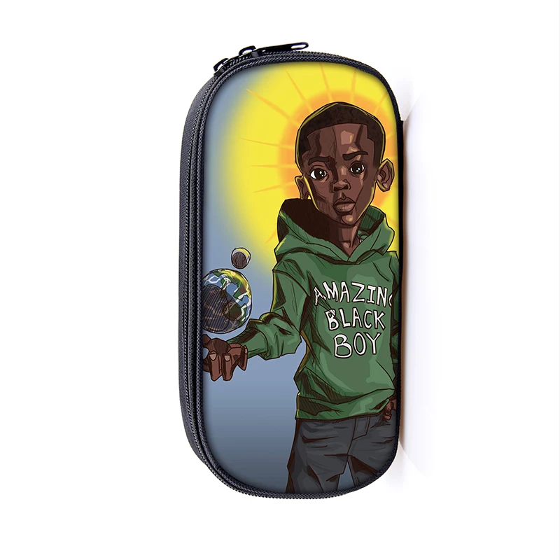 Мультяшные афро-косметички для мальчиков, футляры для карандашей, школьные принадлежности для мальчиков в африканском стиле, черный пенал для детей