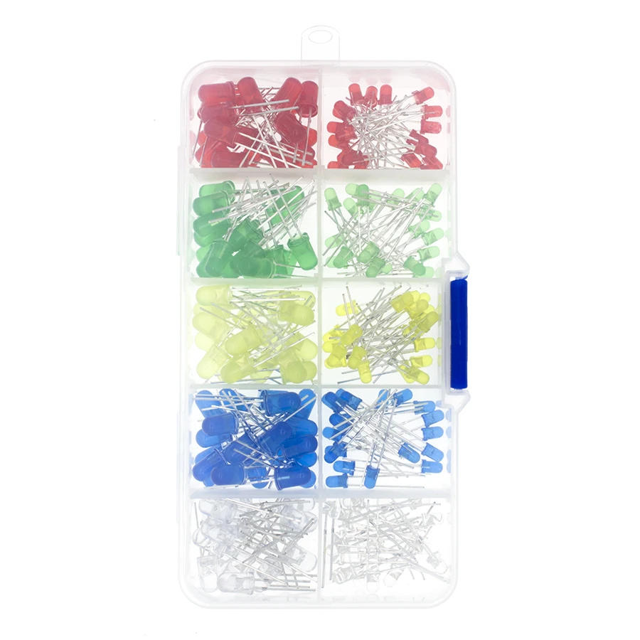 200 шт.лот 3 мм 5 мм светодиодный комплект с коробкой смешанные цвета красный зеленый желтый синий белый светоизлучающий диод в ассортименте 20 шт. каждый новый