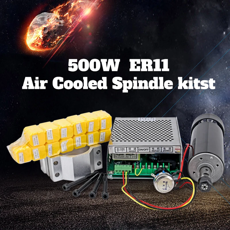 Мотор шпинделя с ЧПУ, 500 кВт, патрон ER11 с воздушным охлаждением, Вт + 52 мм зажим + регулятор скорости питания для гравировки печатных плат