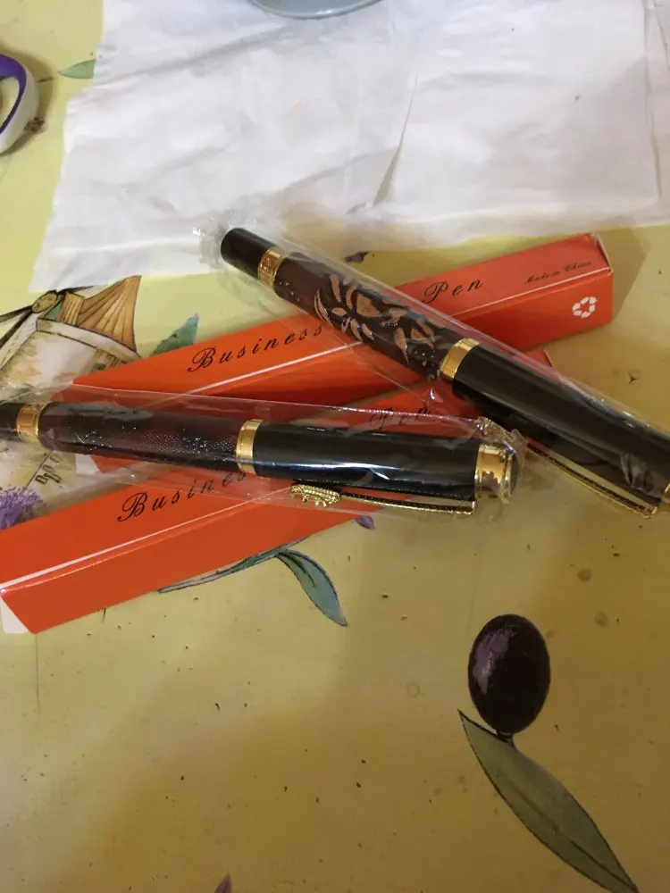 You describe the pens as metal and yet they are wrapped in embossed paper and the wrapping is so so poor