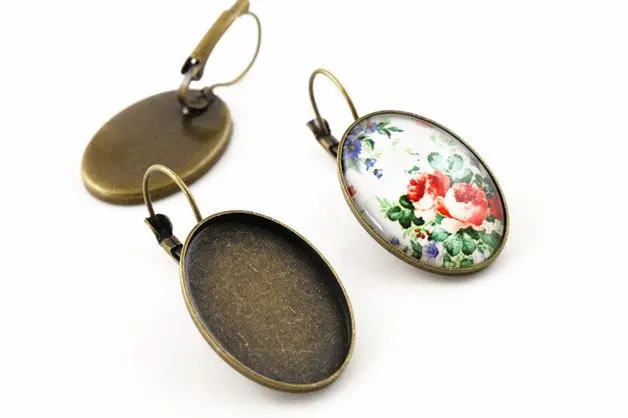 18x25 мм 10 шт бронзовые покрытые французскими рычажными задними серьгами пустыебазовые, подходят 18x25 мм овальные стеклянные кабошоны; Оправы для серег (L5-33)