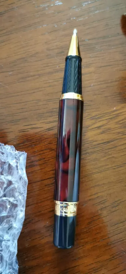 Во всём соглашусь с предыдущими отзывами: ручка отличная, выглядит солидно и красиво, очень хорошо, что она тяжёлая! Конечно есть элементы, которые выдают, что это не Montblanc, но для этой цены просто супер! Главный минус, что цвет стержня чёрный, но с этим можно жить. Ну и доставка просто вечность ♂️
