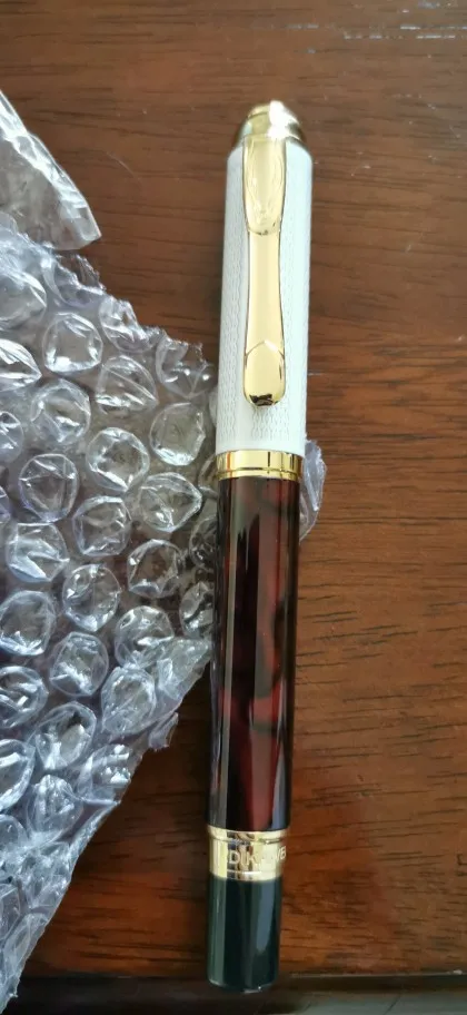 Кажется достойным писателем. Нравится дизайн этой модели. Не сужающийся книзу массивный и ретро вид с привлекательным бордовым пестрым бочком и красивой кремовой крышкой. Также есть авторучка. Очень хорошая цена за этот Dikawen 821 по сравнению с продавцами из Великобритании и очень впечатляющим продавцом с быстрой отправкой в Великобританию. Впечатлен? Да очень много!